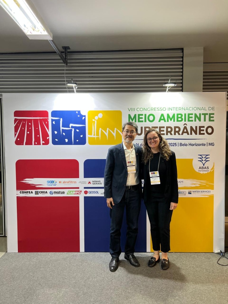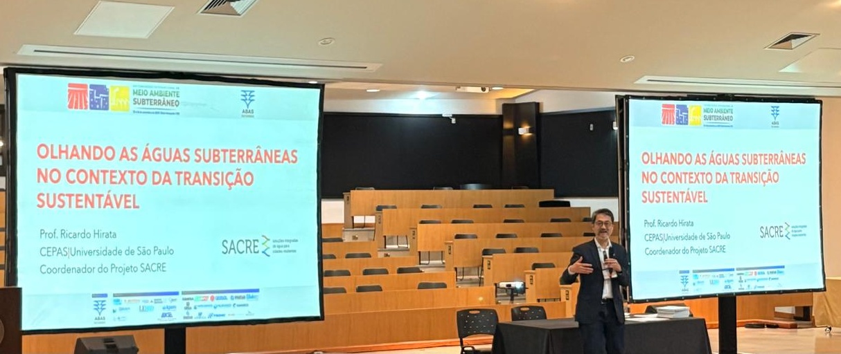 O Prof. Ricardo Hirata abriu o congresso com a palestra magna: “Olhando as águas subterrâneas no contexto da transição sustentável”, abordando os desafios e as oportunidades para o uso responsável dos aquíferos no país. Já a doutoranda Carolina Santos apresentou parte dos resultados obtidos no projeto SACRE – Soluções Integradas de Água para Cidades Resilientes, financiado pela FAPESP, que investiga estratégias para garantir a segurança hídrica urbana por meio da gestão sustentável do sistema rio-aquífero.